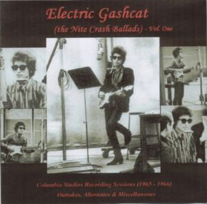 Electric Gashcat (the Nite Crash Ballads) is an organized compilation of circulating Bob Dylan Columbia Studios Recording Session Outtakes for 1965-1966. As with the FSorJOTS project, alternate mixes and live performances are included for interest and comparison. In particular, the live performances were selected as a sampling of what the Nite Crash experience could be like outside the studio, mid-late 1965 and into 1966. Multiple stage band lineups were used with noticeable technical differences and contrasting playing styles. There was a world of evolution in presentation maturity, song tempo, and togetherness of vocals and support playing. Little surprise that the same could be said for the studio sessions themselves. Sometimes it makes sense to try and place things in time line order and then picture the music (and the musical processes) as the sessions came down individually and over a period of time. Hopefully, Electric Gashcat can be helpful in attaining such a goal.
